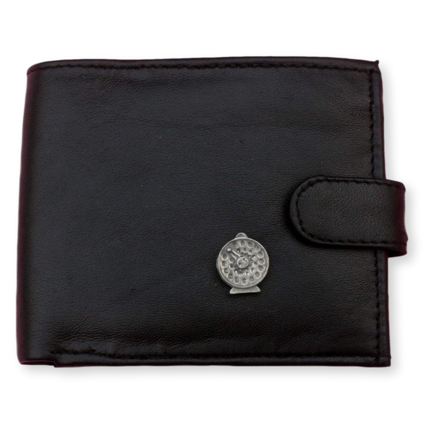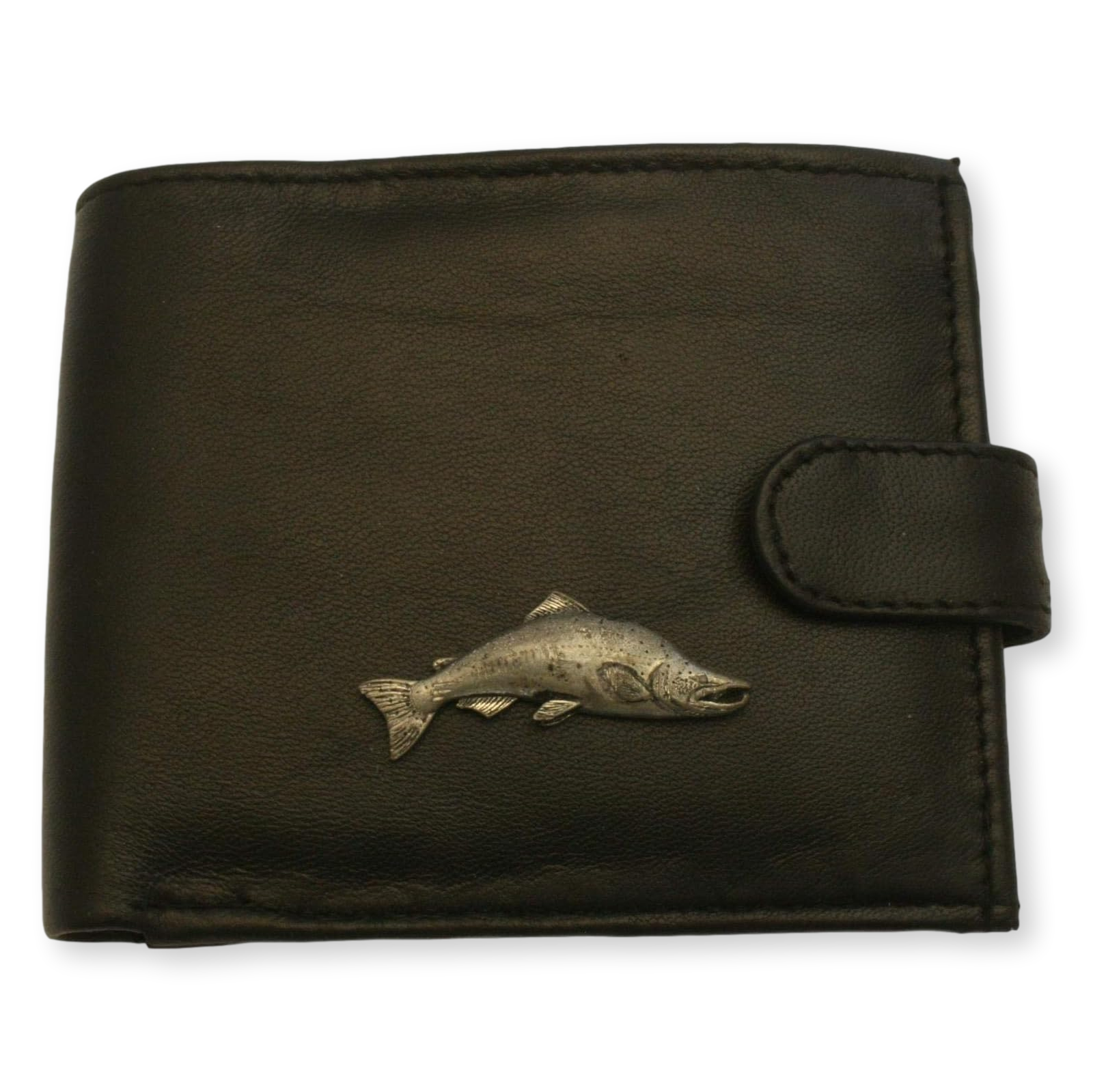 This wallet features a hand-cast pewter fly fishing design on the front, making it an ideal gift for fishing enthusiasts.