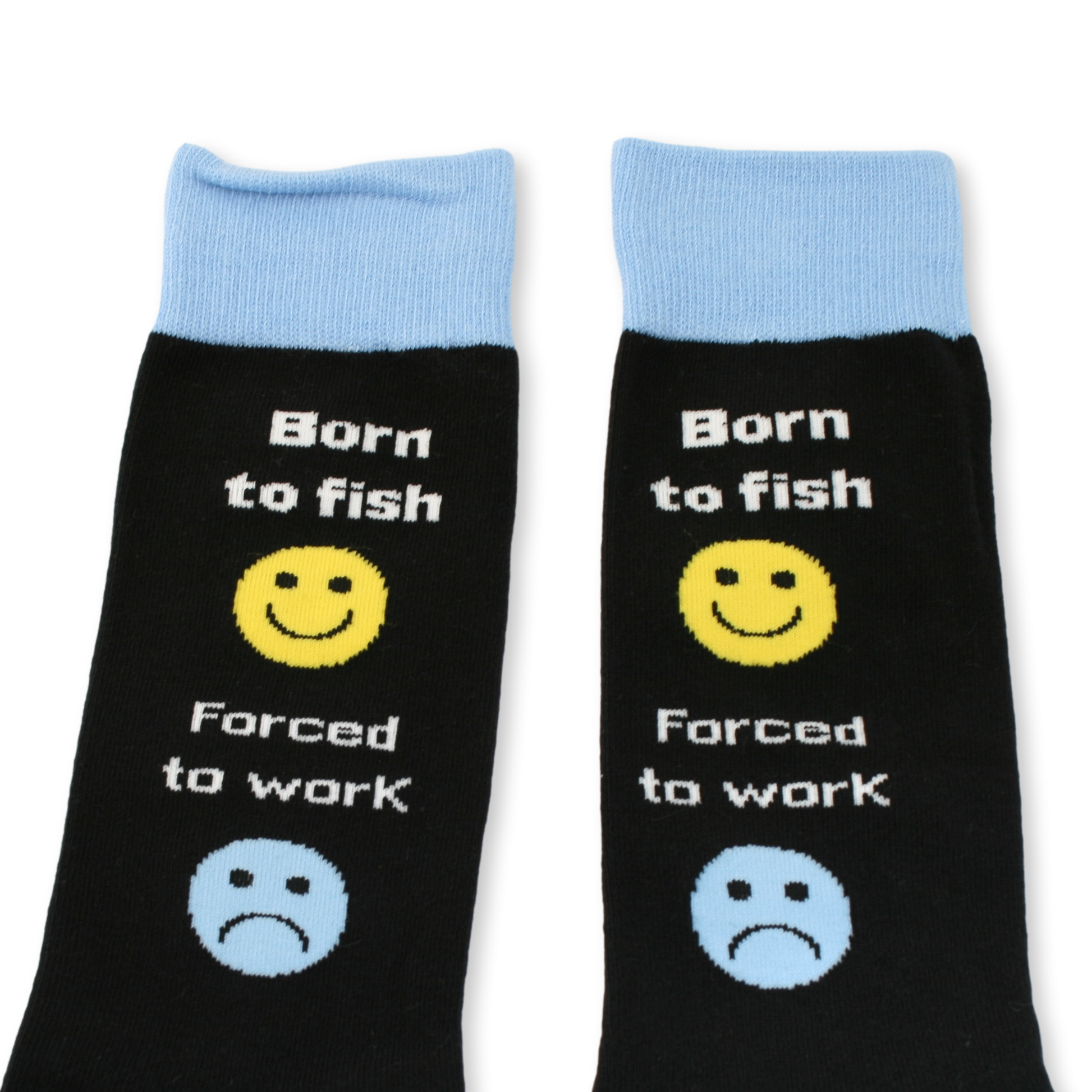 Born to fish, Forced to work Novelty Socks Blue & Black Size 6-11
